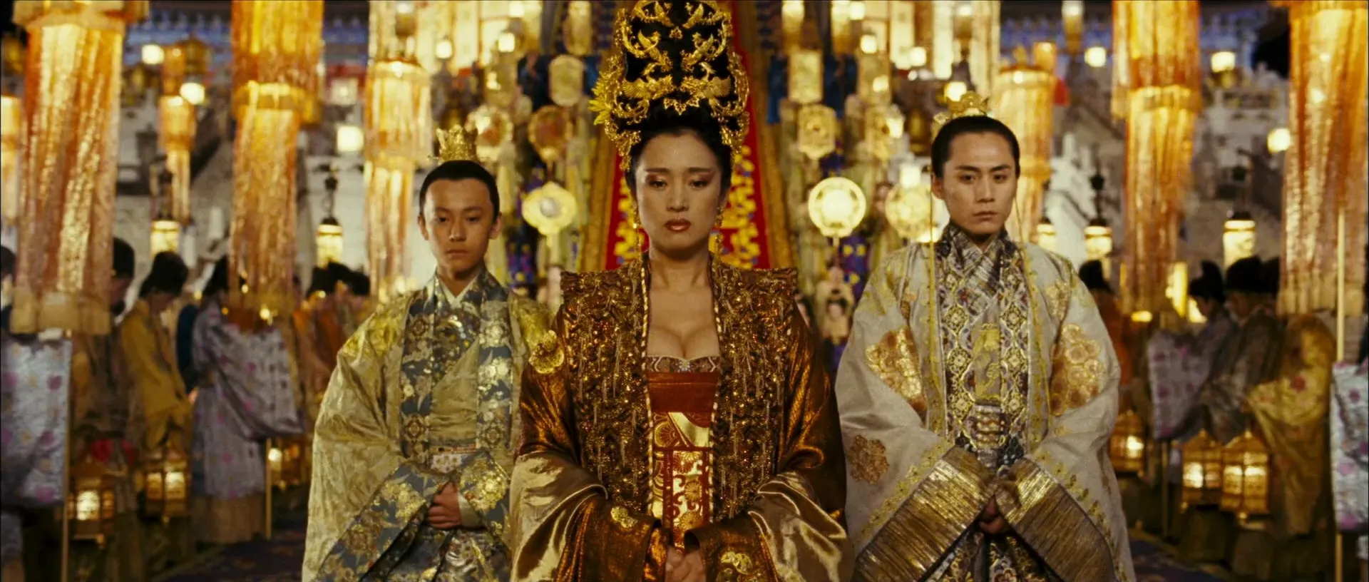 Cast: Chow Yun-fat as Emperor Ping, Gong Li as Empress Phoenix, Jay Chou as Prince Zhai, Liu Ye as Crown Prince Wan, Qin Junjie as Prince Yu, Li Man as Jiang Chan, Ni Da-Hong as Imperial Physician Jiang, Chen Jin as Imperial Physician's Wife, Siran Ge as Maid, Jiulong Guo as Host of The Festival, Li Ming as Senior Eunuch, Ma Tianyu as Medicine Boy, Feng Bai as Soldier